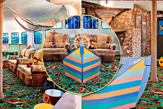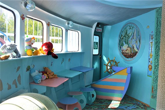 На борту теплохода «Бородино» есть детский салон, где представлены игрушки и развлечения для детей разного возраста.