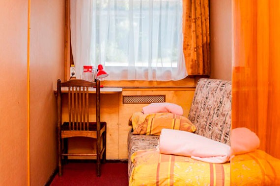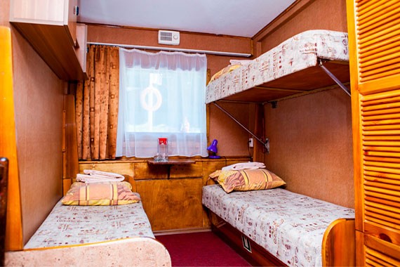 К категории 1 относятся каюты: 3, 4, 9. Одноместная каюта со всеми удобствами, расположенная на средней палубе. В каюте: раскладной диван (ширина 140 см), столик, стул, зеркало, кондиционер, холодильник, душ, туалет, раковина. Возможно размещение 3-го человека на дополнительном месте.