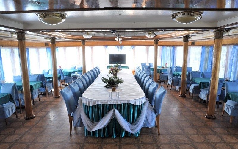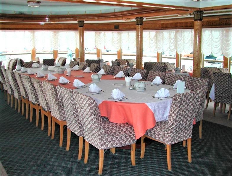 Провести время с близкими и друзьями можно не только на палубе, но и в салонах на средней палубе: в читальном и музыкальном. Развлекательная программа на борту не предусмотрена.