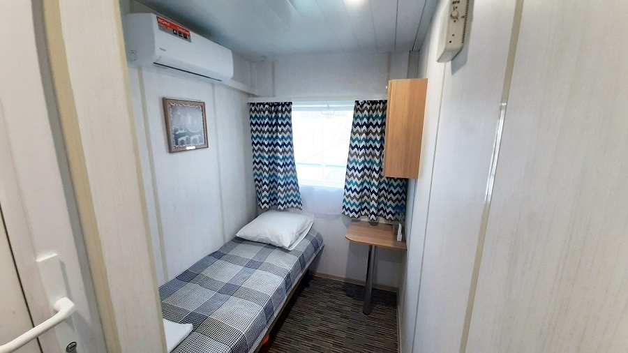 К категории Сигма 1-местная относятся каюты: 221, 228–231. Одноместная каюта со всеми удобствами, расположенная на средней палубе. Площадь каюты ≈ 5,5 м².