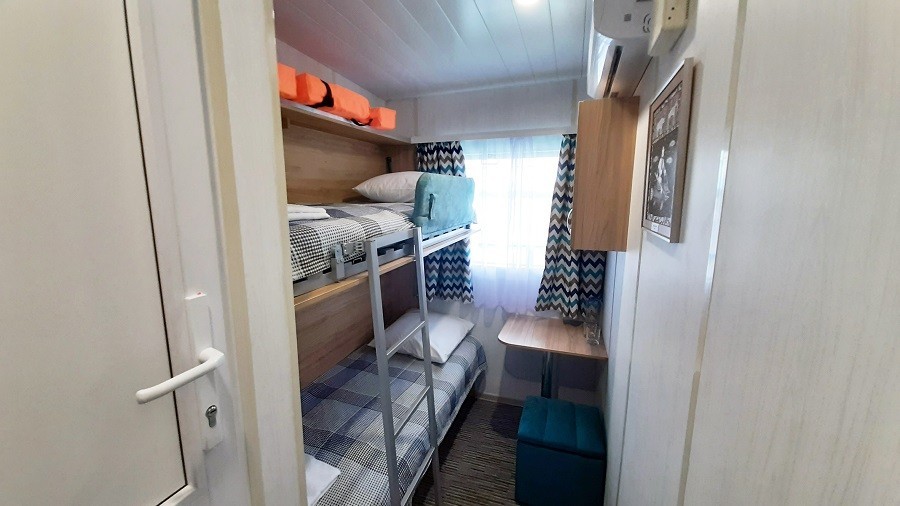К категории 3Б (4) относятся каюты: 001, 002. Четырехместная двухъярусная каюта с частичными удобствами, расположенная на нижней палубе. Площадь каюты от 7,5 до 8 м². Возможно двухместное и трехместное размещение в каюте.