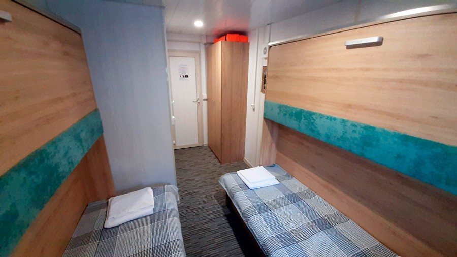 К категории Бета (4) относятся каюты: 003–008. Четырехместная двухъярусная каюта со всеми удобствами, расположенная на нижней палубе. Площадь каюты от 8 до 8,5 м². Возможно двухместное и трехместное размещение в каюте.