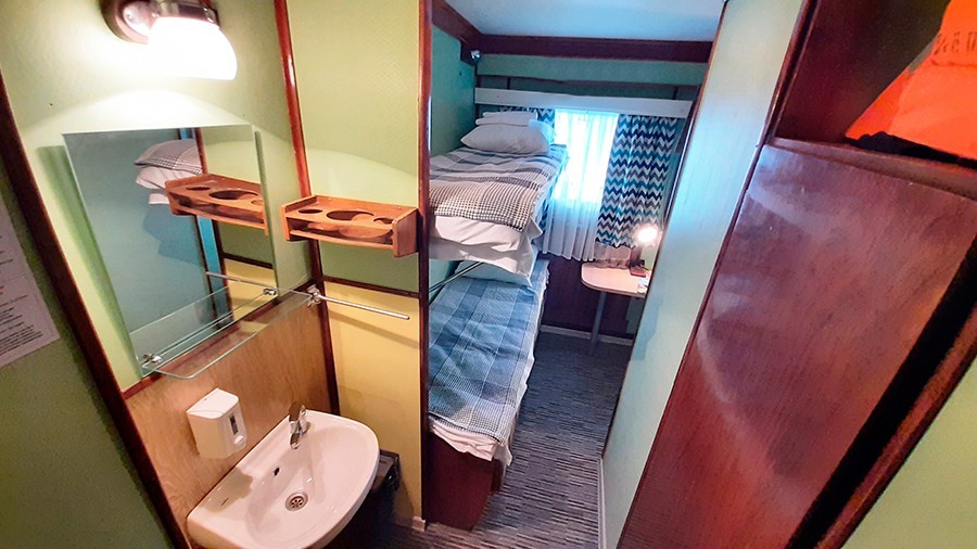 К категории 1Б относятся каюты: 211, 212, 214. Двухместная двухъярусная каюта с частичными удобствами, расположенная на средней палубе. Площадь каюты ≈ 5,5 м².
