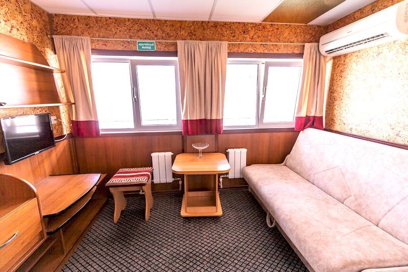 К категории Люкс относится каюта: 320. Двухместная двухкомнатная каюта со всеми удобствами, расположенная на средней палубе. Возможно размещение третьего человека на дополнительном спальном месте – диван.