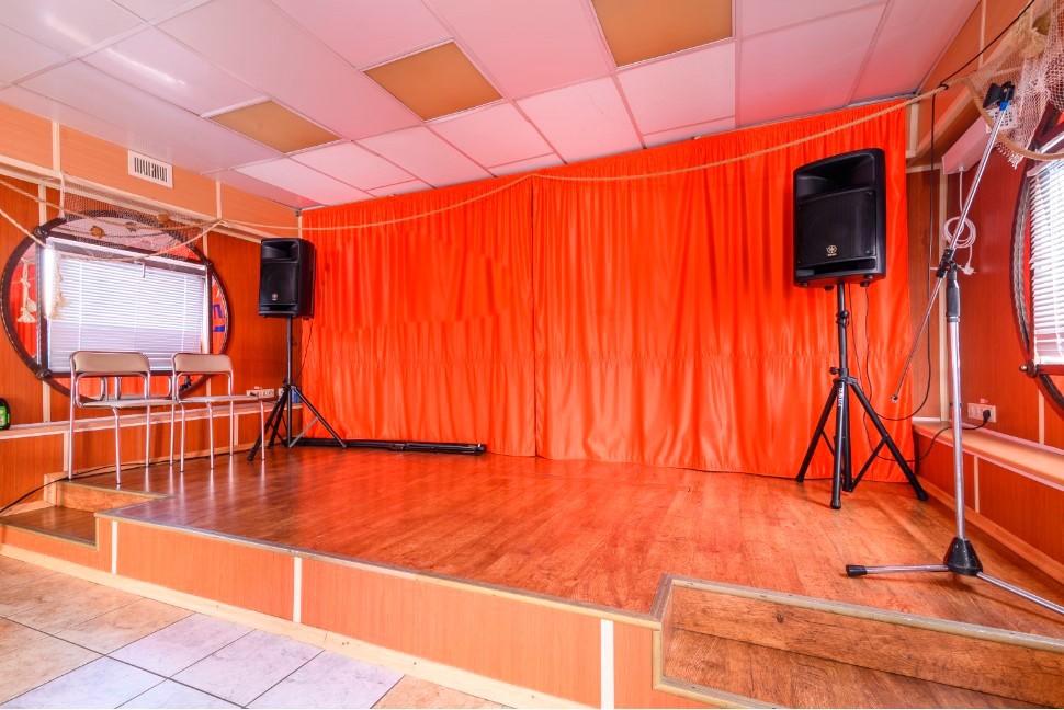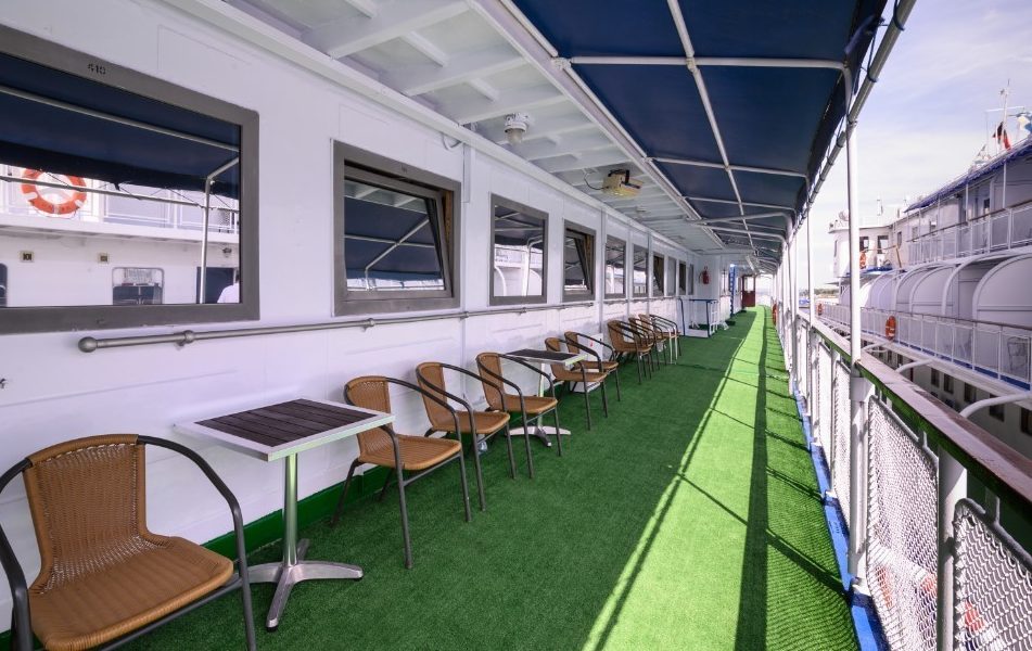 На борту теплохода гостей ждёт насыщенная арт-программа: викторины, творческие мастер-классы, занятия по кулинарии и карвингу, концерты и весёлые конкурсы. Для любителей спокойного отдыха предусмотрены массажный кабинет, музыкальный салон с настольными играми и караоке, а также открытый солярий для солнечных ванн.