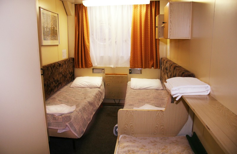 К категории 3-местная (нижняя палуба) относятся каюты: 102–119. Трехместная каюта со всеми удобствами, расположенная на нижней палубе. Площадь каюты ≈ 11 м². Размер кровати – 70х190 см. В каюте: три спальных места, шкаф для одежды, радио, ванная комната (раковина, душ, туалет), кондиционер, два иллюминатора, розетка на 220V.