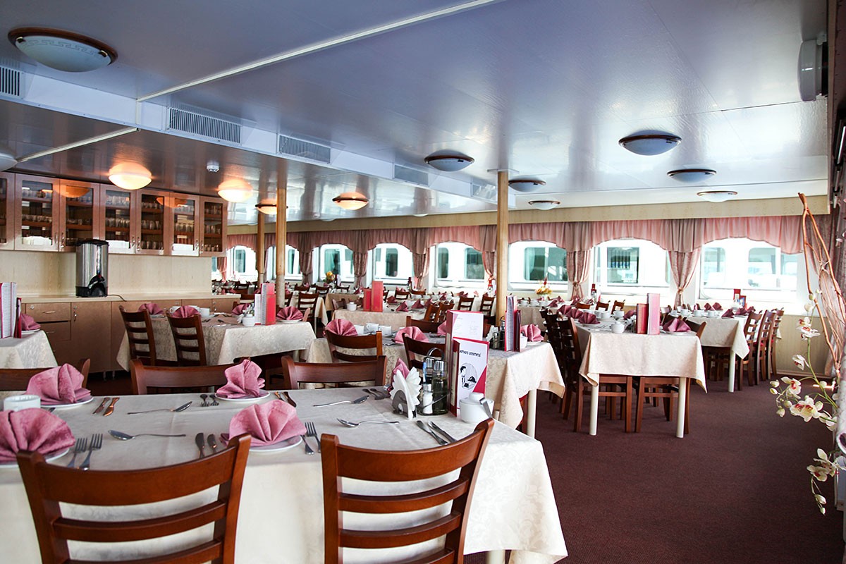 Гарантированное трехразовое питание в течение круиза. В день посадки и высадки турпитание адаптируется под время, а если экскурсия совпадает с приемом пищи, туристам предоставляется возможность посещения ресторанов и кафе города или выдачи «сухого пайка». Мы следуем гастрономической концепции «Родные берега», предлагая блюда, отражающие лучшие кулинарные традиции Поволжья, Дона, Чёрного моря, Енисея, Русского Севера и Восточной Сибири.